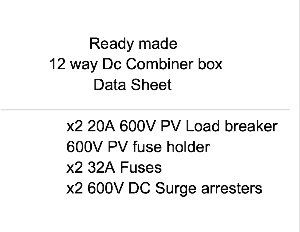 Elevate your solar power system with our DC Combiner Box 12-Way. Connect up to 12 panels to a single inverter to optimize energy production. Featuring a robust design and premium components, this combiner box ensures safe and efficient energy transmission, enhancing the performance of your solar array.